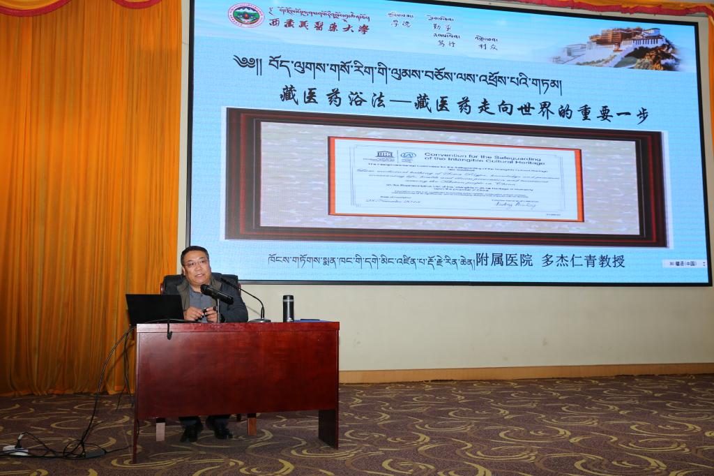 多杰仁青教授立足藏医药在国内外的现状,藏医药浴法的传承发展等实际,分析了藏医药目前面临的困难问题,并结合未来发展,提出了文化的自信来自于了解其历史和理论及其价值的思考观点。多杰仁青教授首先介绍了目前藏医药在国内外遇到的机遇和挑战,以及西藏自治区层面支持和推动藏医药发展的现状举措,藏医药浴法的学术领域、实践特点和临床使用价值,藏医药浴法申报联合国科教文组织非物质文化遗产代表作名录过程等,引出对藏医药的深入研究必要性和重要性,进一步提出藏医药尚未真正发挥本身所具有的优势特色和发展潜能。他指出藏医药学深层次的研究有机会给人类提供更利好的诊疗服务,从而能更好地推动藏医药学的传承发展。