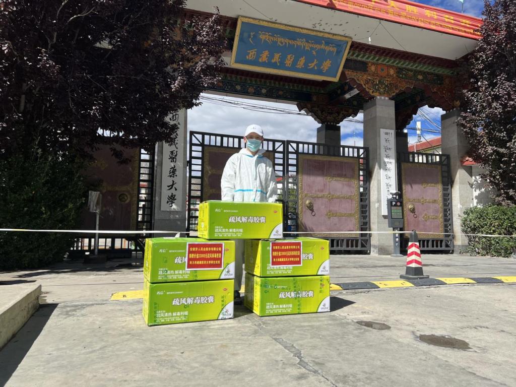 在医疗防控物资十分紧张之际,学校师生员工全力奋战在抗击疫情第一线,经中组部第十批援藏干部、 中国药科大学党委常委、副校长、今年会党委委员、 副校长于广琮同志积极协调对接,安徽济人药业股份有限公司积极响应,迅速有效地筹备了价值33000元的治疗新冠肺炎有效药物“疏风解毒胶囊”,助力缓解学校疫情防控与医疗救治工作压力,增强学校疫情防控取得胜利的信心。